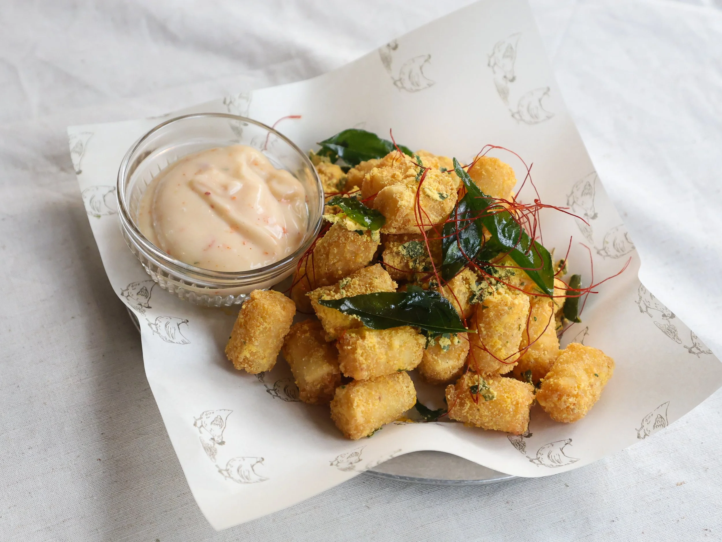 Crisp, golden bites dusted in salted egg, finished with curry leaves for that extra fragrance.